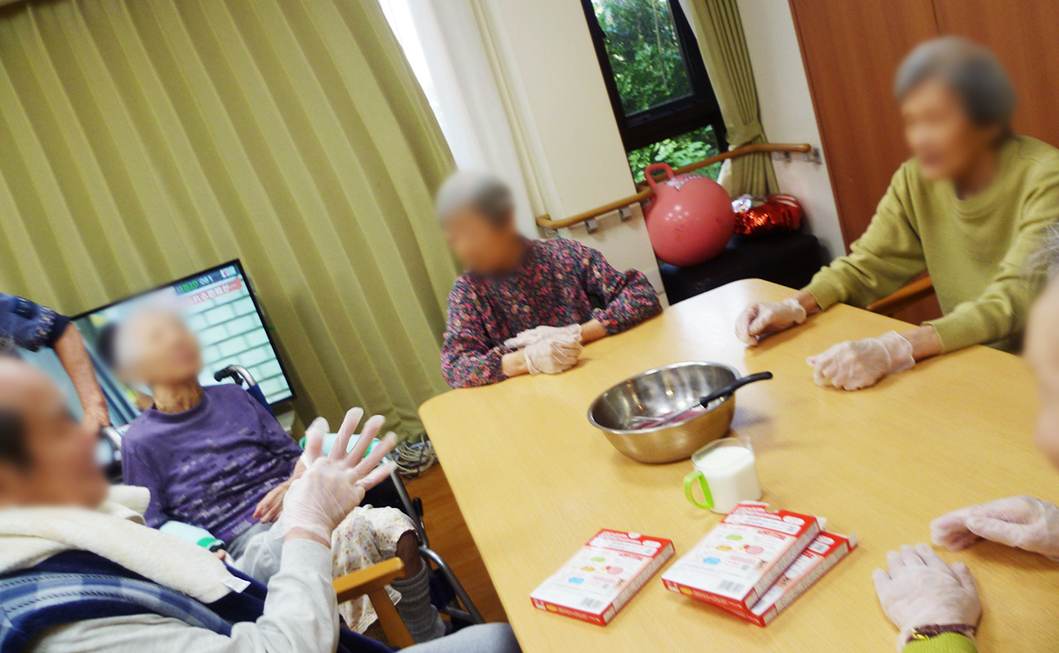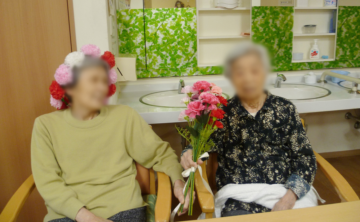 たのしい家木川東1階で母の日のお祝いをしました。 1階は、男性ご利用者様が2名おられ、2名の男性職員もおります。 この日は男性陣も女性に混ざって手作りのおやつを作って食べ、その後はゲームで楽しみました。 皆様、どんな母親だったのでしょうか。。。 ご家族様から、ご利用者様の昔の話を聞くのが職員の楽しみになっています。 是非、施設にお寄りの際は、昔話を聞かせていただけたらと思います!