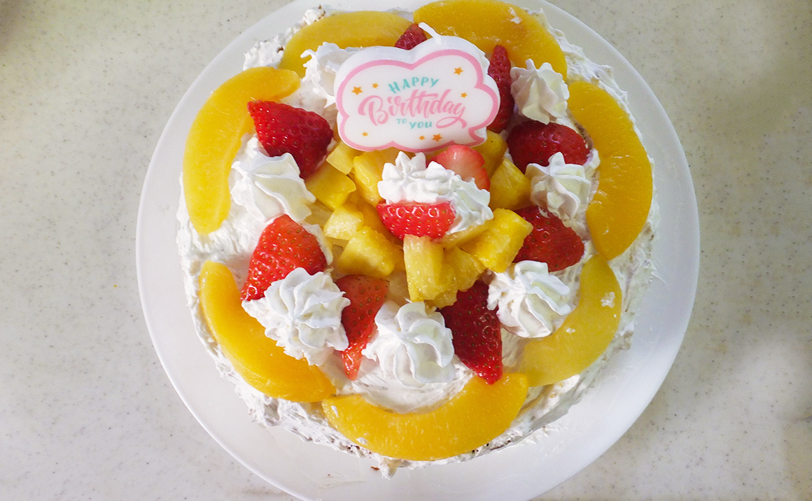 職員の手作りケーキとお祝いカードをプレゼントさせていただきました。