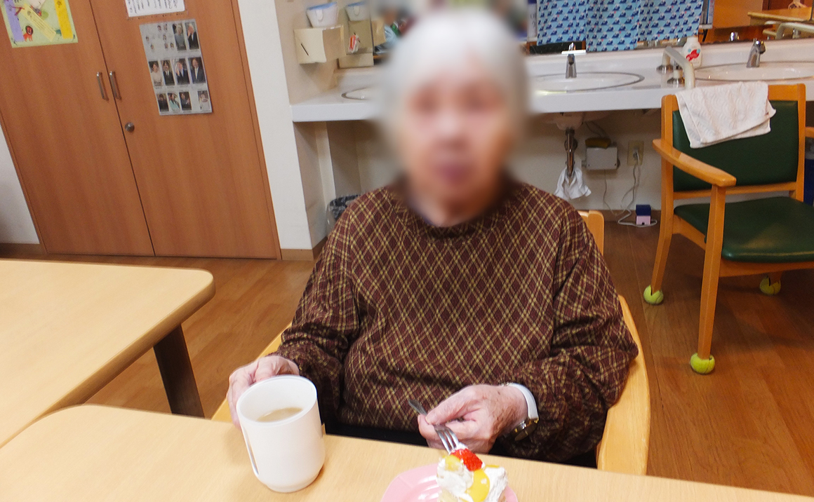 1階の百寿のお祝いの翌日、たのしい家木川東2階フロアでもお誕生日会を開きました♪ 元気な95歳のご利用者様です!