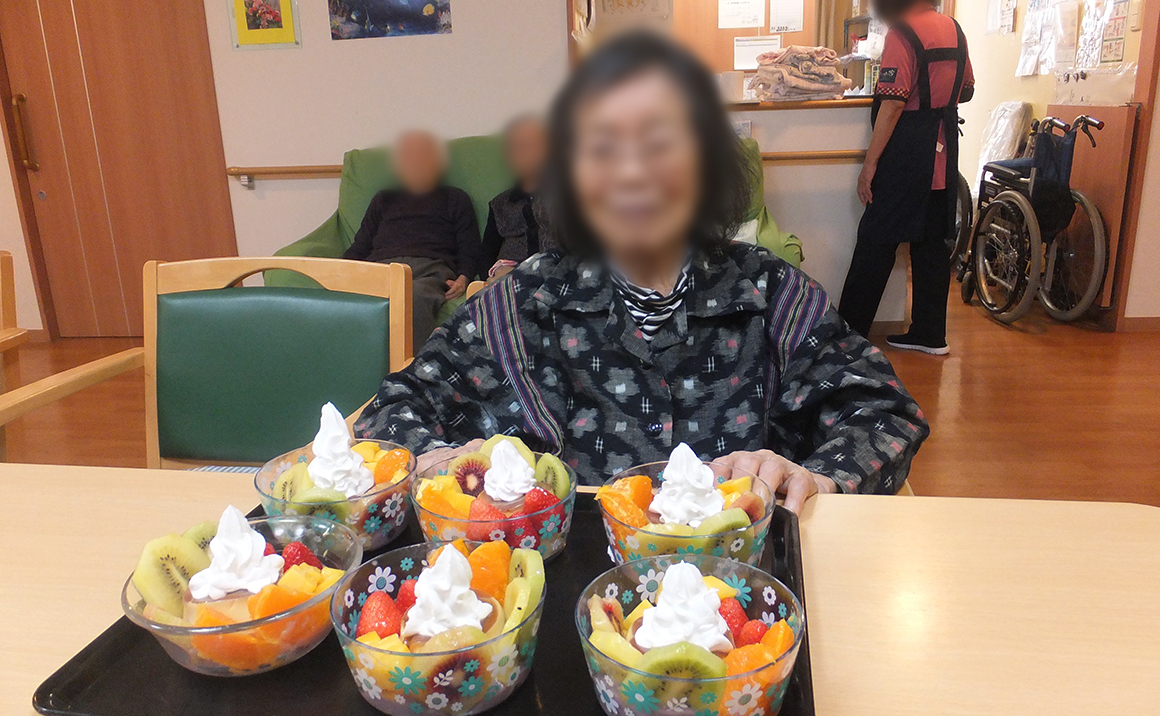 おやつにプリンアラモードを提供させていただきました(*^_^*)
