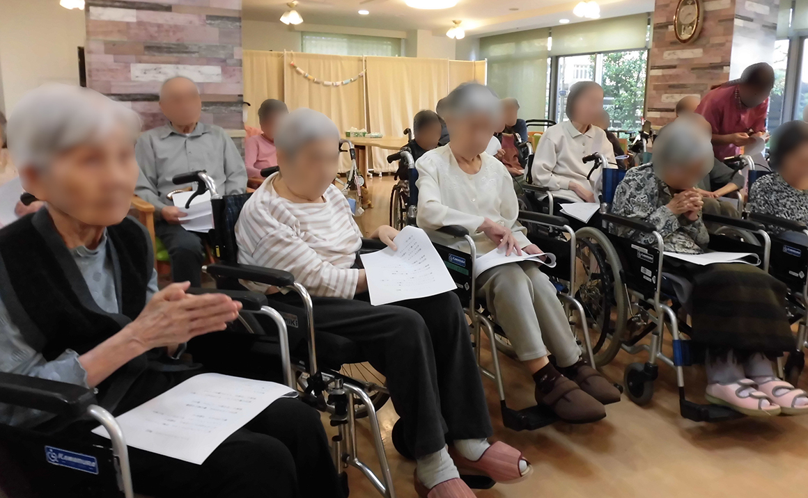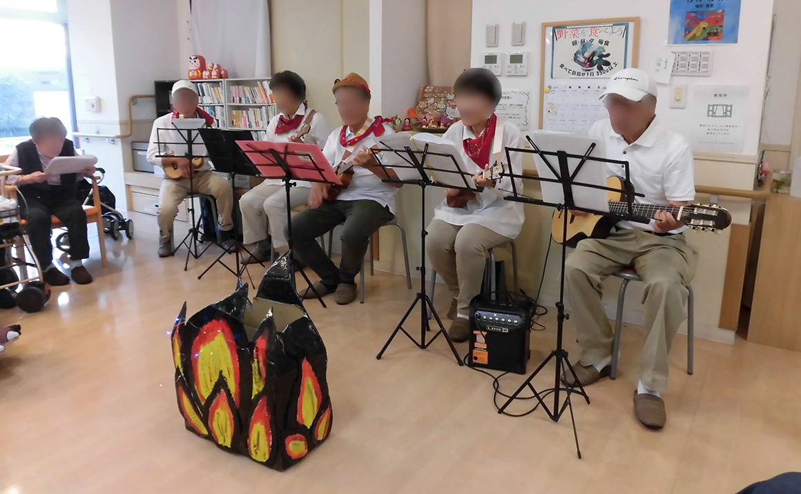 プレザンメゾン此花高見では本日ボランティアグループたき火さんによる『定期ウクレレ演奏会♬』を開催いたしました。 ご入居者様は歌詞用紙をみながらウクレレの演奏に合わせて元気な歌声が施設全体に響きわたり、笑いありのとても楽しい時間を過ごすことが出来ました。