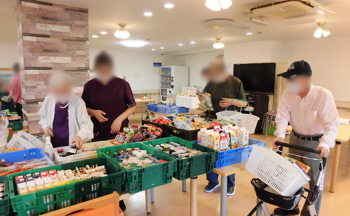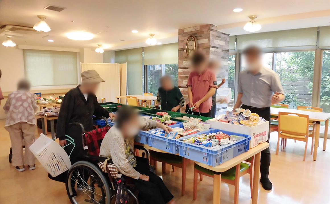 本日プレザンメゾン此花高見では移動スーパー『はじ丸』に来ていただきました。 ご入居者様は列をつくり並ばれ、オープンと同時にお目当ての商品ケースを見て回られ、 リラックスされたご様子で和気あいあいと楽しい時間を過ごすことができました。