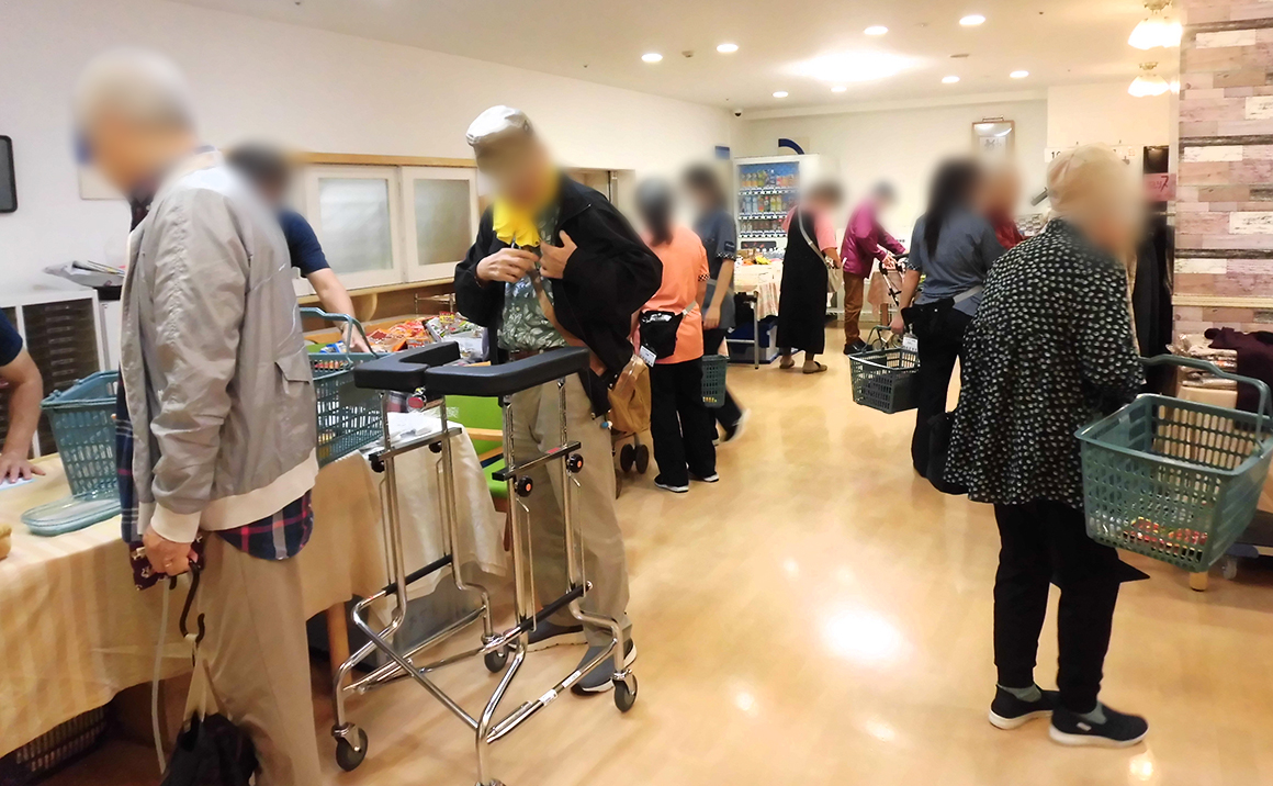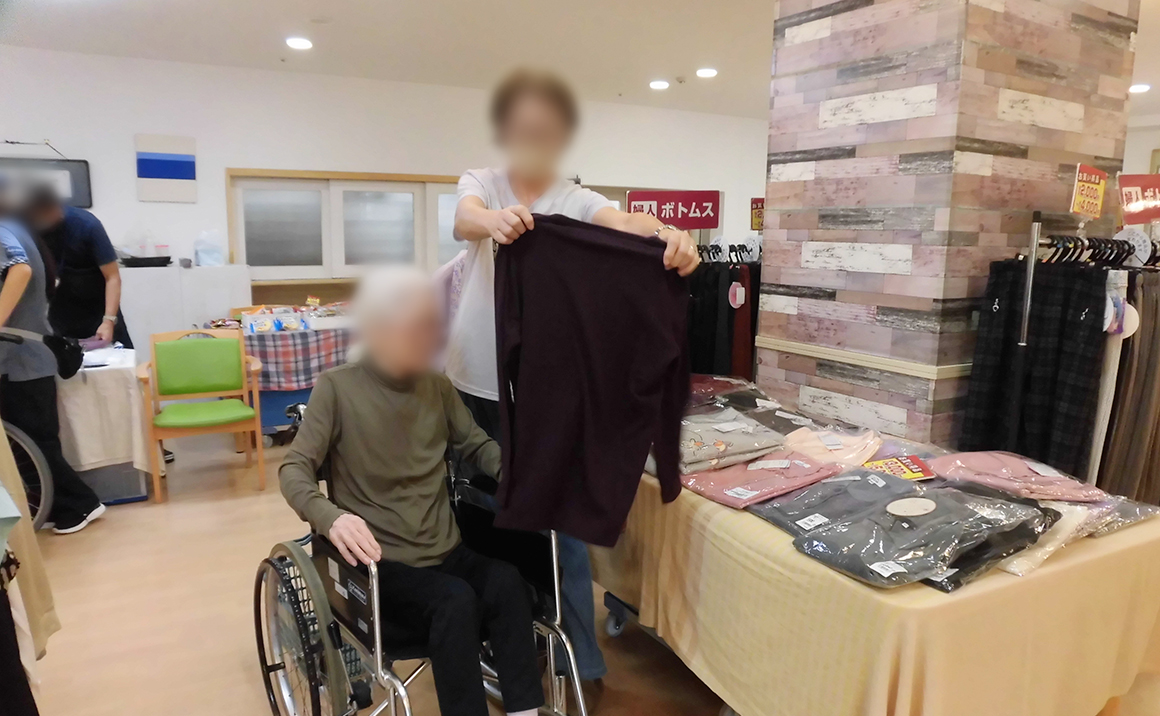 プレザンメゾン此花高見では本日、秋の『出張デパート』を開催いたしました。 とても人気のあるイベントの一つであり、会場の食堂内は盛大に盛り上がっておりました。 今回もご家族様をお迎えしての『出張デパート』であり、ご入居者様も楽しく会話をしながらお買い物をされたり、 ご家族様とのお買い物に笑顔で応えられたりと、心温まるご様子を拝見することができとても幸せな時間を過ごすことができました。