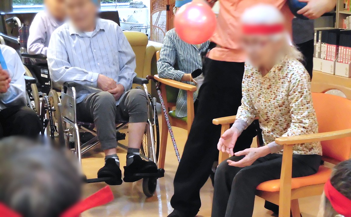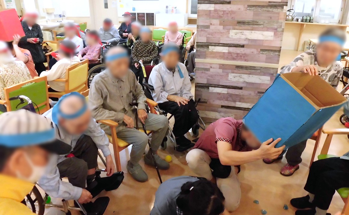 本日プレザンメゾン此花高見では『秋の運動会』を開催いたしました。 運動会とあって赤、青のハチマキを使用し、ボール投げ、玉入れとご入居者様達は真剣に競技に取り組まれておられました。 得点争いは「勝ちたい‼」気持ちが大きくとても積極的で活気に満ちた大運動会が声援の中、安全に行われたことに感謝しております。