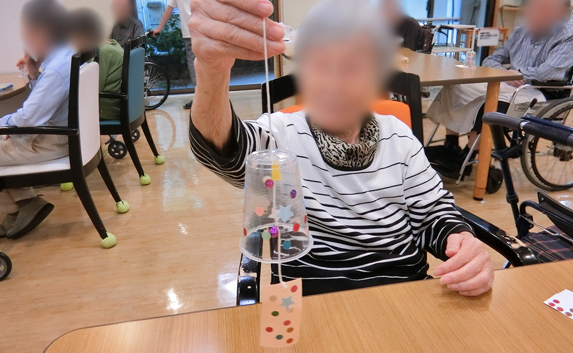 夏のレクリエーションとして、透明なカップを使った風鈴作りを行いました🎐