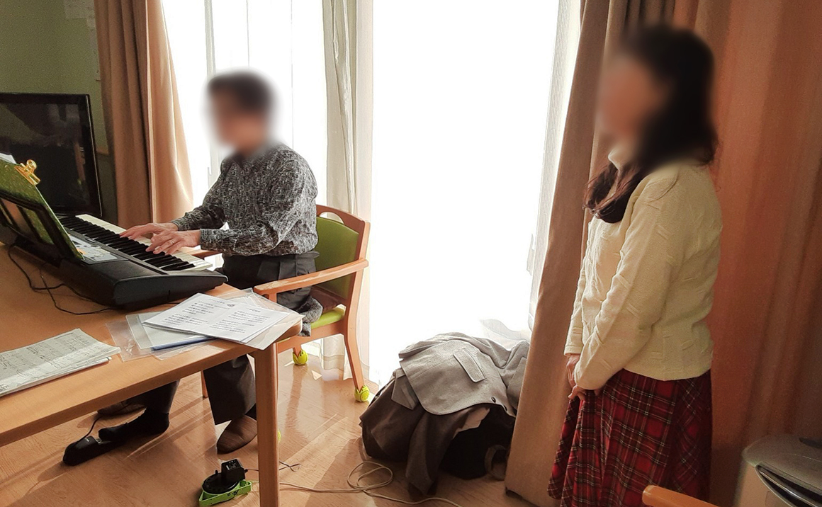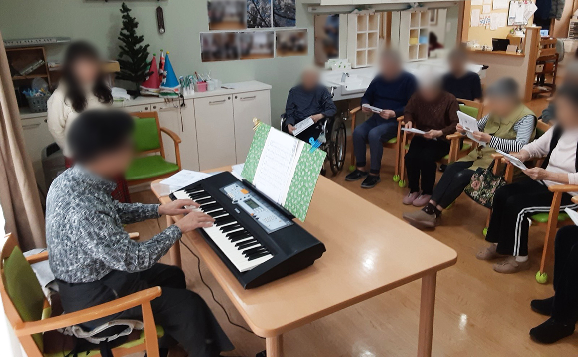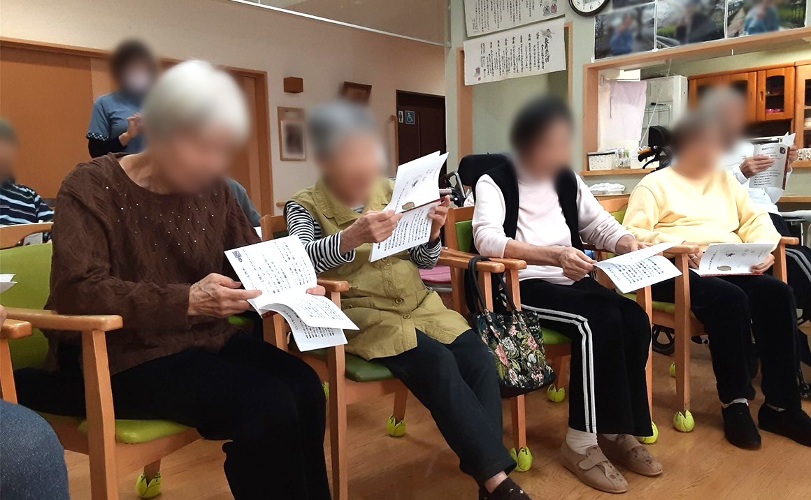 昔馴染みの童謡から、懐かしの名曲まで様々な曲を演奏していただき、一緒に歌いました。