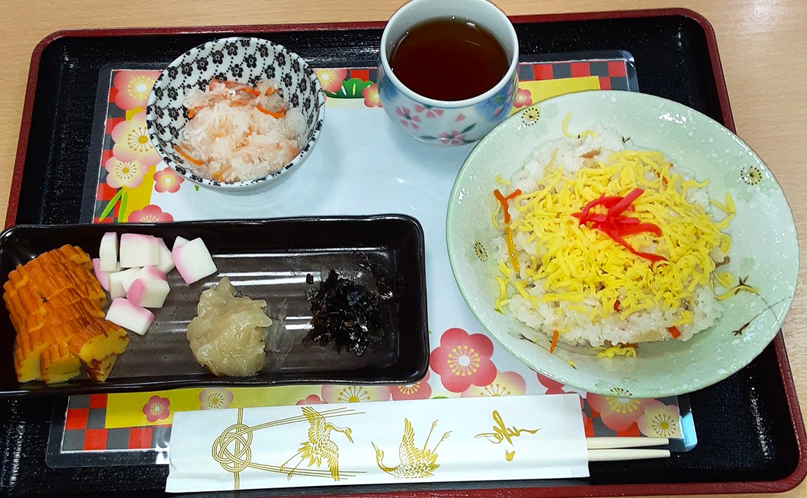さて、たのしい家静市ではお正月メニューとしてちらし寿司に伊達巻、昆布巻き、紅白なますなどを召し上がっていただきました。