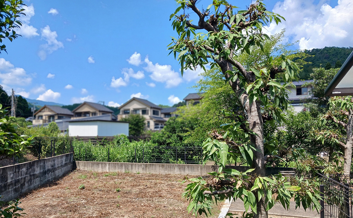 毎日暑い日が続きますね・・・雨が降ったと思えばいつも警報級の大雨・・・ 異常気象までとは言いませんが、この暑い中で庭の木々たちを剪定していただいております。 いつもオーナー様がやってくださっています。この広々としたスペースには、いつか作物を植えたいですね♪