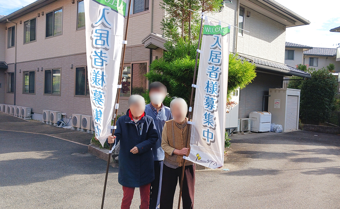 ご利用者様代表2人に幟を持っていただき、写真をカシャ( *´艸`)