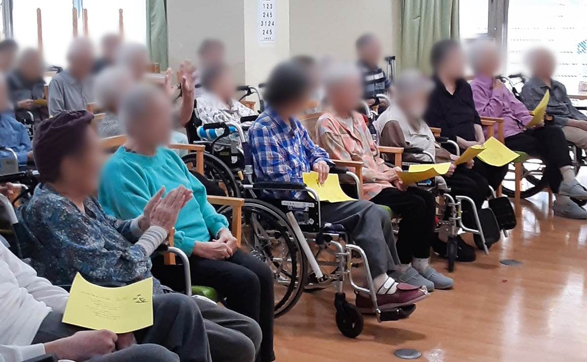 当日は美しいハーモニーとともに、懐かしい唱歌や季節の歌そして昭和の名曲など入居者様の思い出深い曲を披露して頂きました(^^♪
