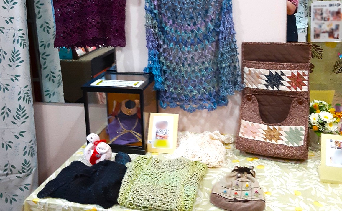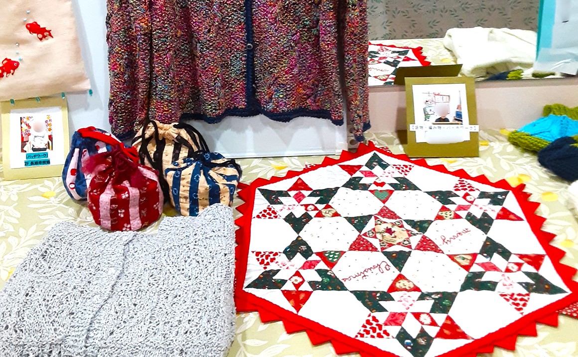 編み物やパッチワーク、木目込み、書道など、それぞれの個性と長年の経験が光る素晴らしい作品が