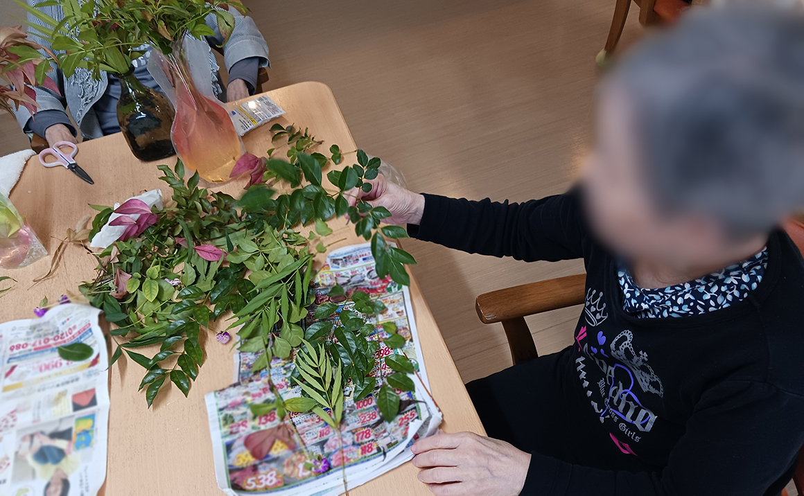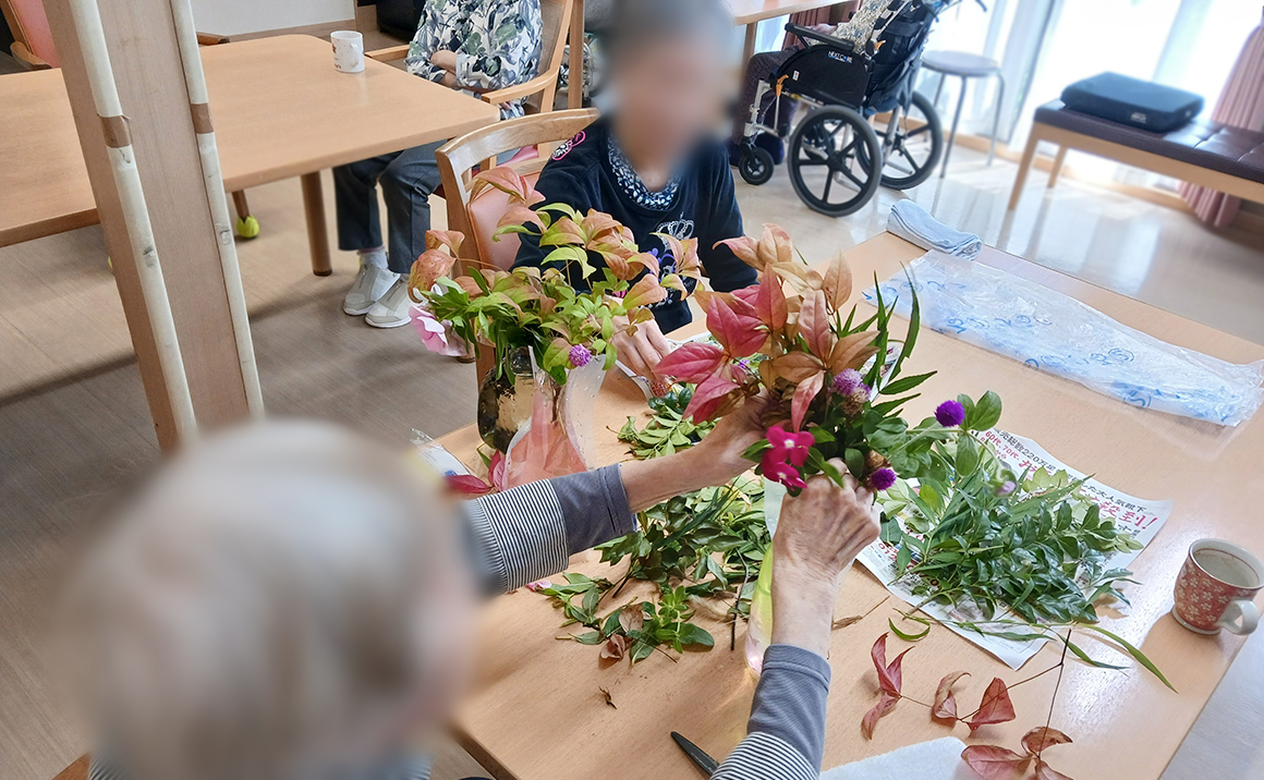フロアに置いてあるお花も入居者様が手入れをして下さいます。