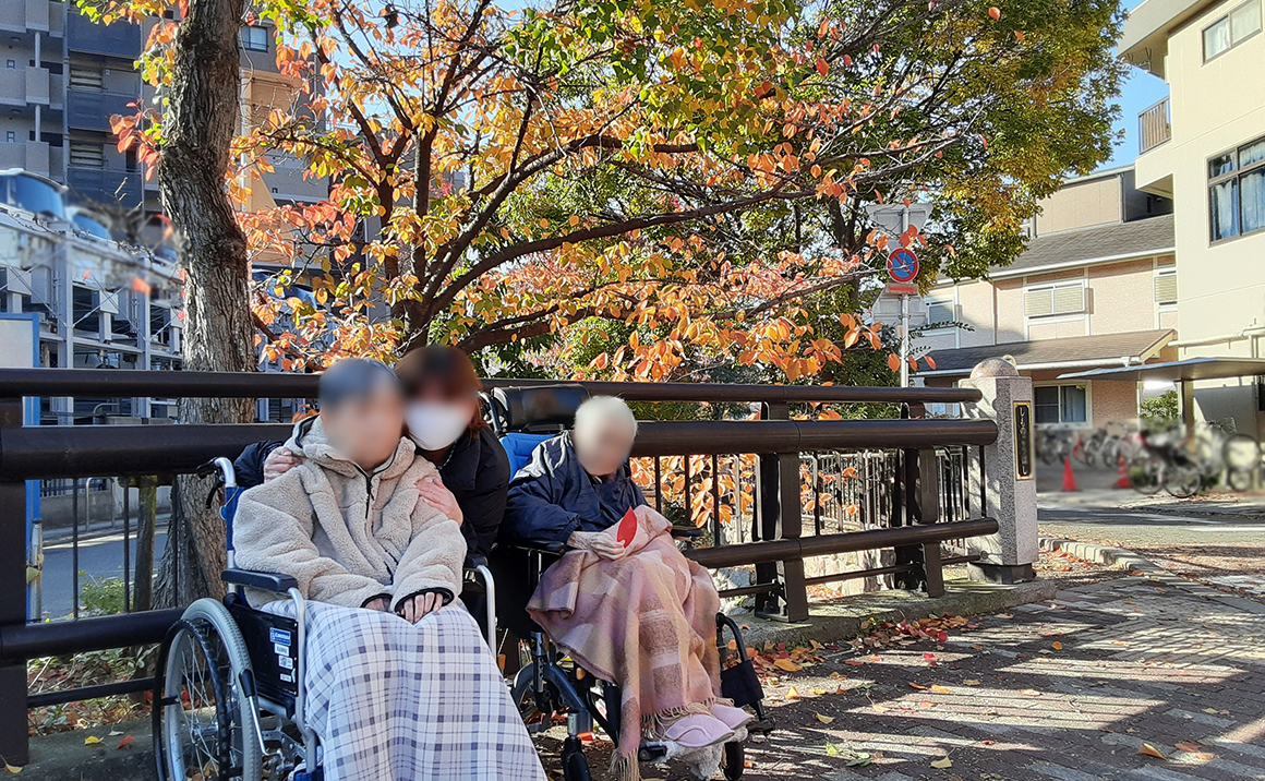 暖かい日に入居者様の外出レクを行いました。