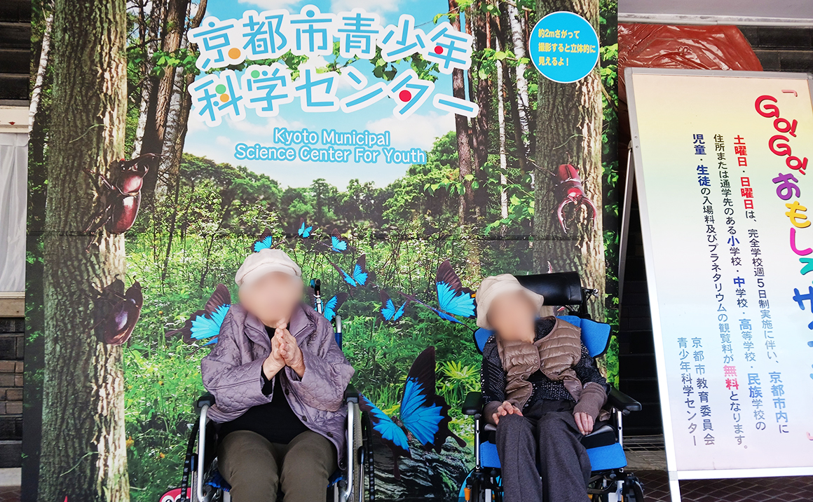 先日、入居者様2名と京都青少年科学センターに行ってきました! 天気も良く「あったかくなったねえ」と喜ぶ入居者様とお出かけです。 館内では様々な展示があり「これなんやろ?」「すごいなあ、初めて見たわ」と入居者様も興味深々なご様子でした。 プラネタリウムも一緒に見ることが出来て素敵な1日となりました♪