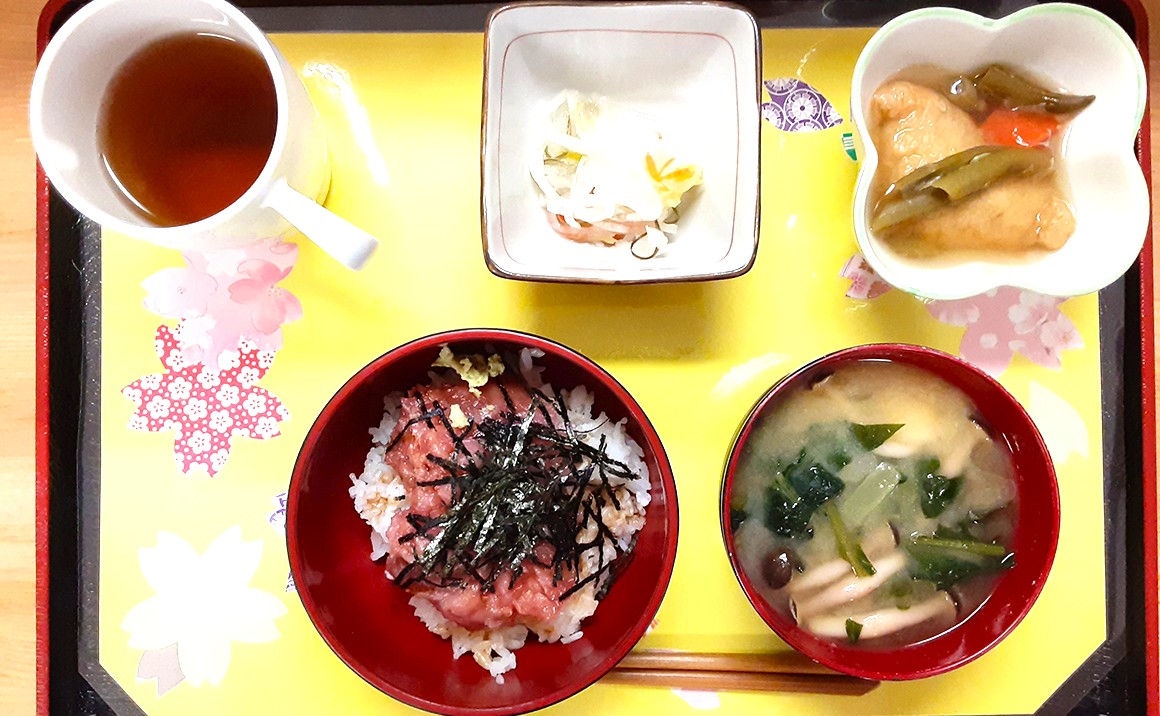 1階の入居者様から「私、まぐろ食べたいわ」との意見が出たのでまぐろ丼をご用意しましたが皆様「美味しい美味しい」と大変好評でした♪