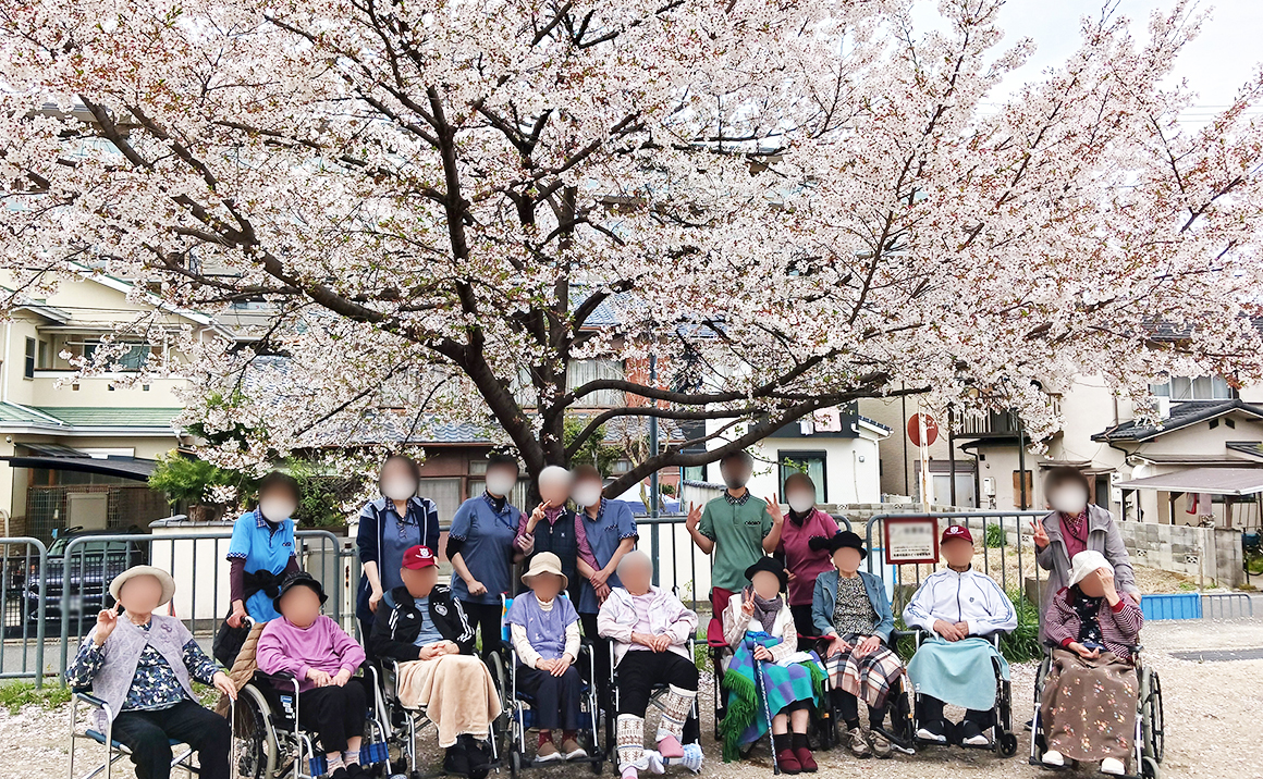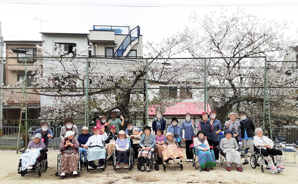 たのしい家伏見深草では毎年4月の入居者様全員でのお花見を恒例行事にしております。