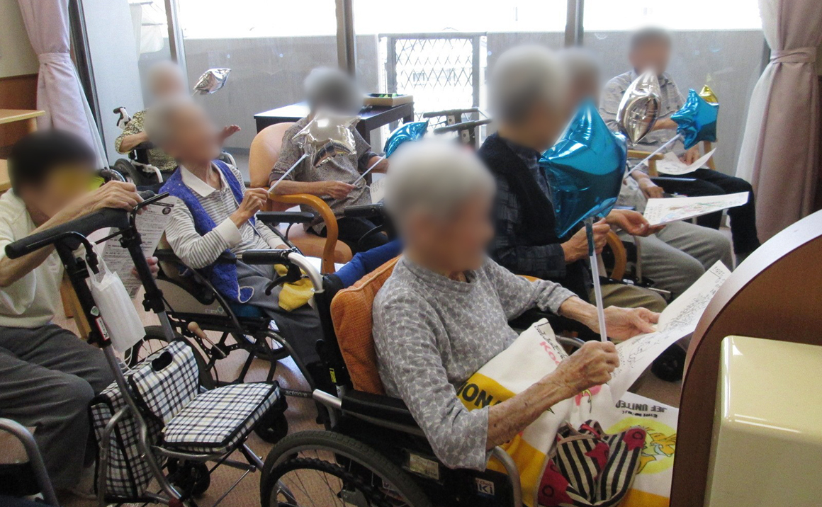 飾り付けを終えると 願い事が叶いますようにと願いながら 七夕の歌を皆様と一緒に合唱しました。