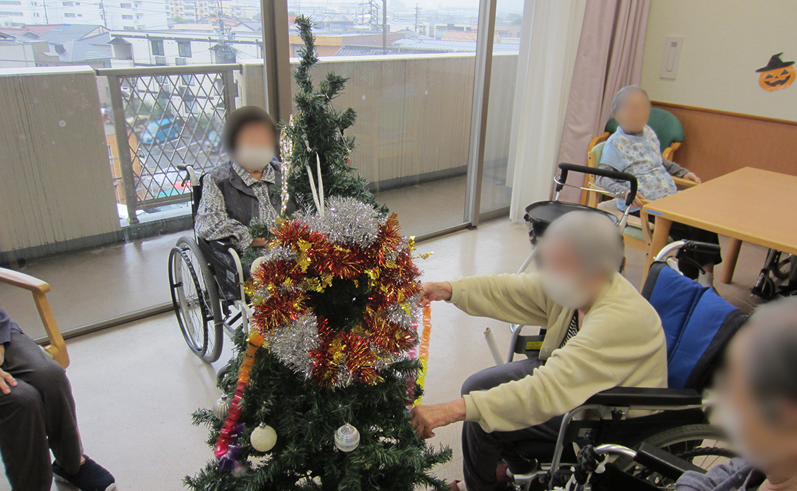 11月15日 少し早いですがクリスマスツリーの飾りつけを行いました。 思い思いの飾りを手にして「どこに付けようかなぁ」と椅子から立ち上がり 飾ってくれた方もみえました。 毎年12月に入ってから準備をしていましたが、今年はゆっくり飾りつけをしましょうとなりました。 入居者様と一緒に折り紙でサンタクロースやトナカイも作つています。 皆様でクリスマスを楽しみたいと思います。
