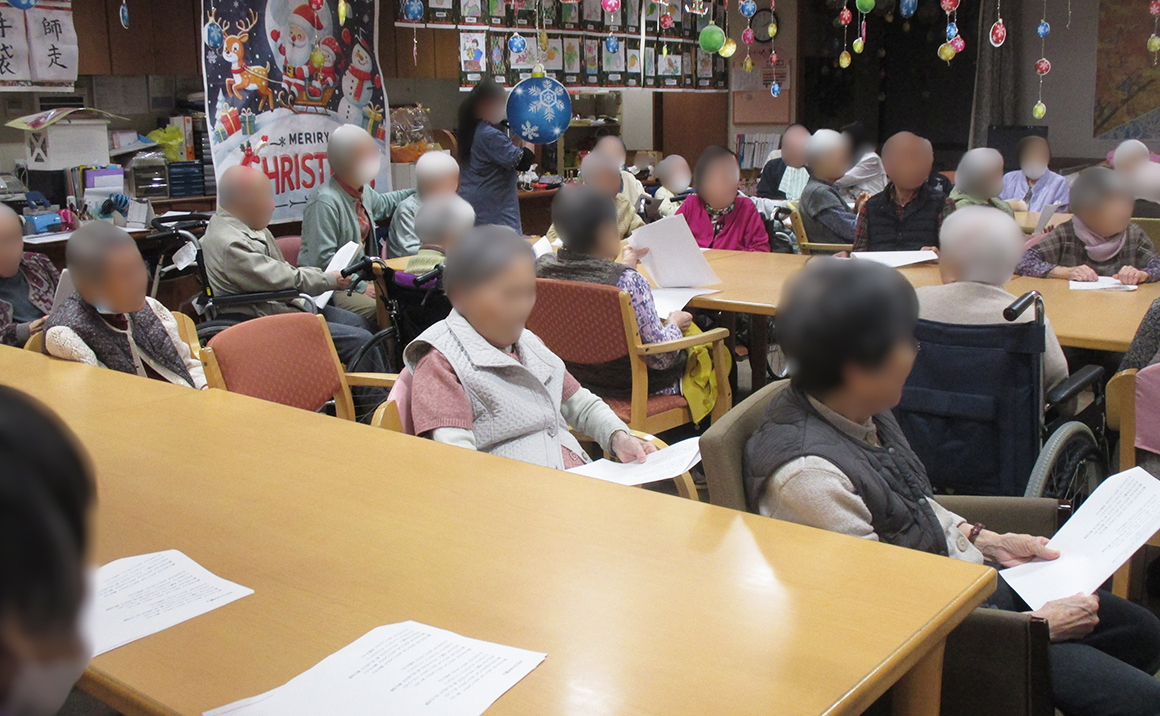12月21日 ピアノ演奏会がありました。 1階ディサービスのフロアに入居者様、家族様が大勢聞きに来て下さいました。 クリスマスの曲に合わせて手拍子や歌も口ずさんでいました。 クラッシックな曲の演奏で眠りに誘われた方もみえました 入居者様様から曲のリクエストにも答えていただき盛り沢山の内容に 予定の時間が過ぎてもなかなか椅子から立とうとされません。 「もっと聞きたかったね」との声も聞かれました。 また来て下さることを楽しみにしています。
