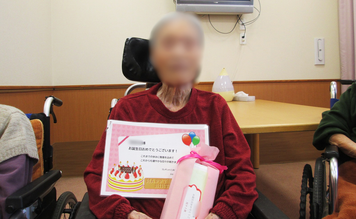 毎月お誕生日会を開いております。 今年はプレゼントに色々なイベントで撮り貯めてきた写真を 綺麗に並べラミネート加工をして今後も増やしていけるようなアルバムを作りました。 担当スタッフも気合いが入ります。 もう一つはボックスティッシュをラッピングしてプレゼントにしました。 初めての試みなのでどんな感じにできるか私達スタッフも楽しみでした。 頂いた誕生日の入居者様はアルバムを見て「こんなのいつ撮ったの?」と 話しがつきませんでした。 これからもたくさん写真を撮ってアルバムを増やして行きましょうね。