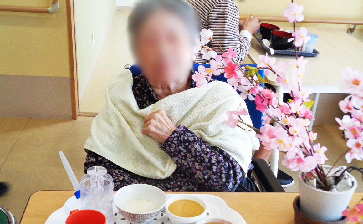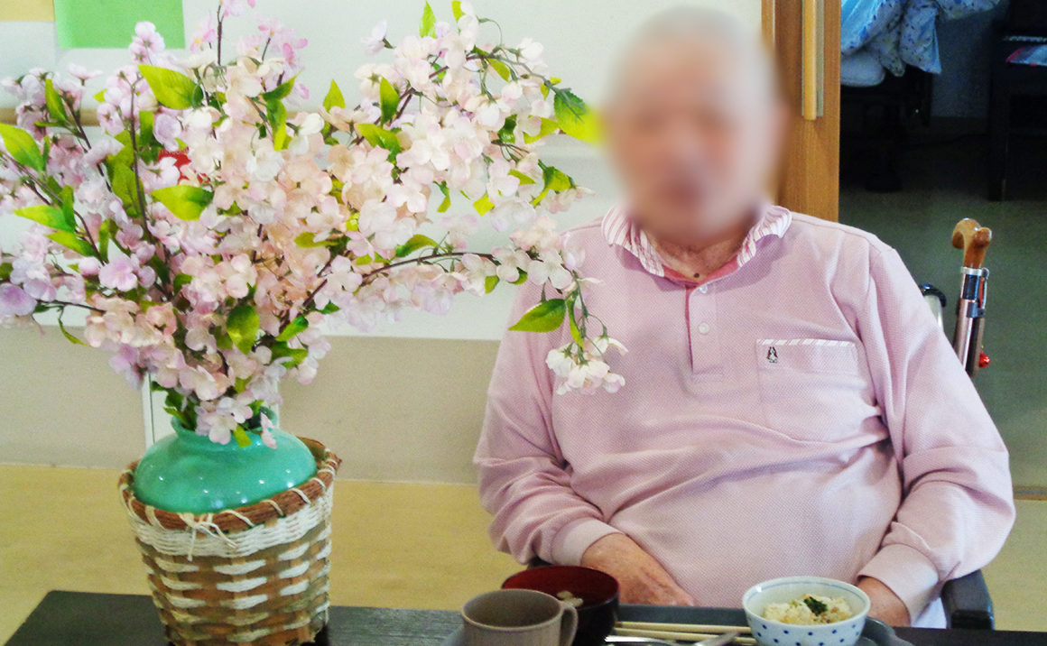 4月3日には味わい御膳というメニューを昼食に召し上がって頂きました。 造花ではありますが桜の花を眺めながら皆様には鯛の炊き込みご飯や海老など様々な食事を楽しんで頂きました。 「美味しい」「おなかいっぱい」と多くの方に喜んで頂けたご様子でした。