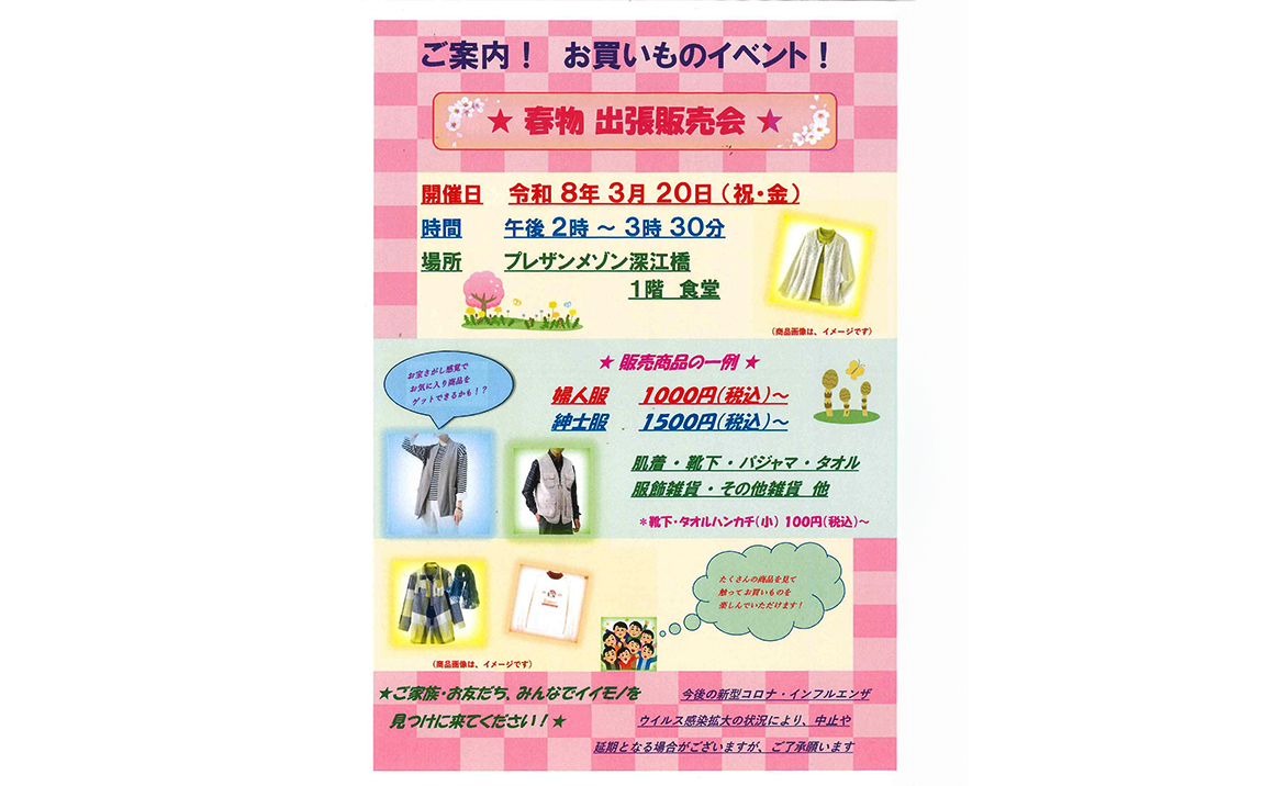 今回は春物の衣類と雑貨となります。