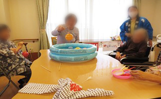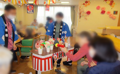 また、月末には2F/3F合同で夏祭りです(^^♪ ハッピを羽織り、ヨーヨー釣りや射的など賑やかに縁日気分を楽しんでいただきました(^^♪