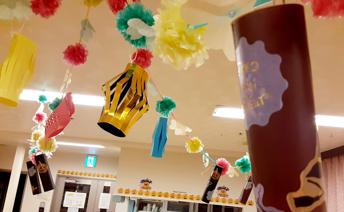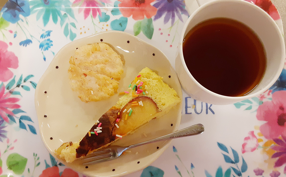 今年の夏からの暑さは、いつまで続くのかという程でしたが、漸く過ごしやすくなり、蛇口の水もひんやりしてきましたね。 たのしい家名古屋南では、季節に合わせ、壁面の飾りを秋らしくいたしました。 そして、近頃食欲の秋を思わせる入居者様に、手作りのアップルケーキでおやつを楽しみ、お腹を満たしていただきました。