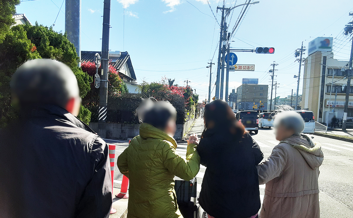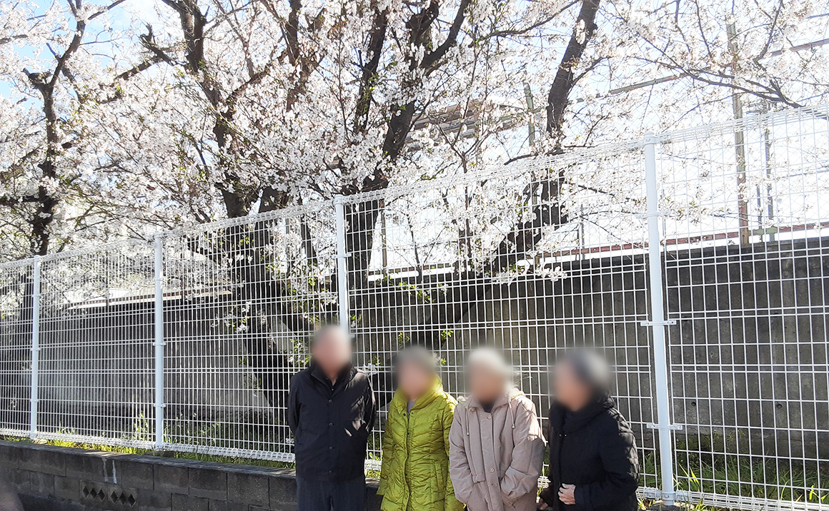 春のひと時 たのしい家名古屋南で見上げた空は、青く澄み渡っています。 電線は多いけど、それがまた味があるというモノではないですか。 風は少し強いけど、春を感じに、お散歩お散歩。 少し足を延ばして、横断歩道を渡り、線路を超えて… 「どこまで行くの~」と言いながら、お喋りも楽しく歩いた先に 「わー、綺麗だねー!」フェンス越しに見事な桜の木が立ち並ぶのを観れて「すごい、すごい!」 と喜んでいただけました。