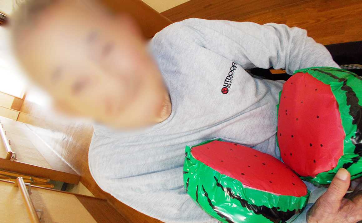 スタッフ手作りのスイカで、スイカ割りを行いました!