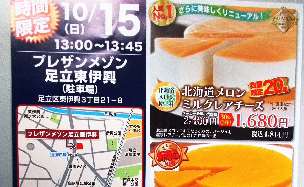 プレザンメゾン足立東伊興に『富良野ミルクファーム』さんのケーキの移動販売車が来ました☺ 事前にポスターで告知して、皆さんわくわくしながら来られる日を待ちました。 当日はあいにくの雨にも関わらず、近隣の方も買いに来られ、地域交流も出来き、楽しかったです。 皆さんチョコレートケーキやモンブランロールケーキ、キャラメルケーキ等、好きな物をお選びになり、ご購入されました。 今日のおやつは、ケーキパーティです!!