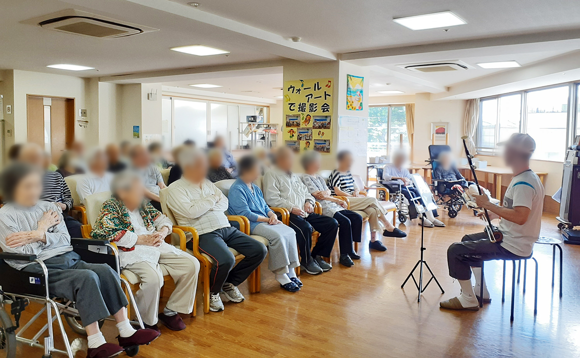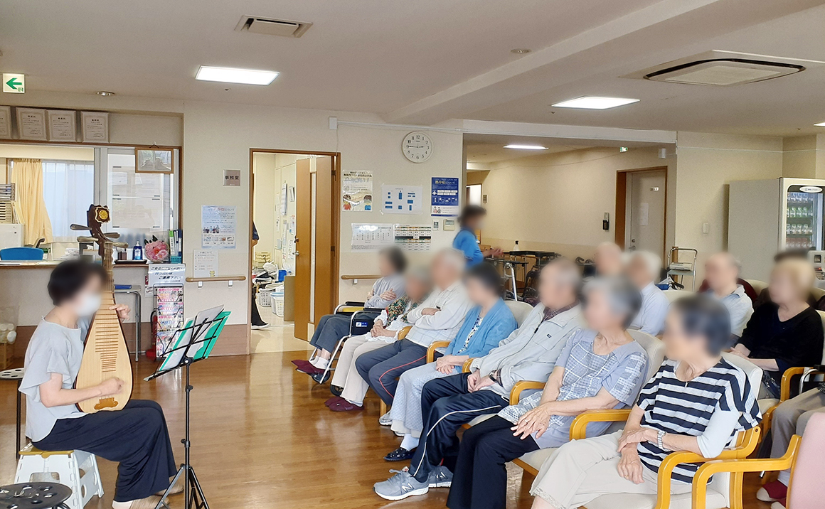 そして、午後は地域のボランティアさんをお呼びして、二胡と琵琶の演奏を聴いていただきました。 みなさんが知っている映画の曲や、日本の歌謡曲に童謡など・・・ 二胡の音色に癒され、琵琶の独特で綺麗な音に感動しました。