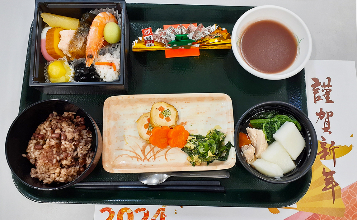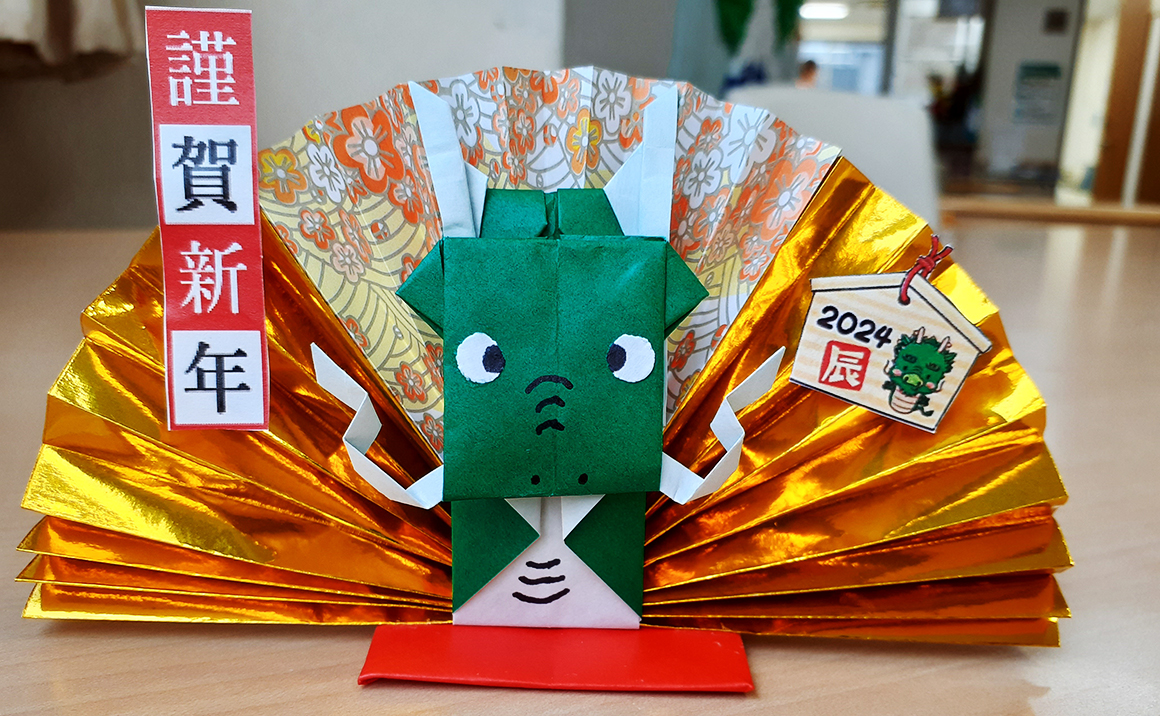 お膳に乗せていただいた龍の折り紙は職員が手作りしたお飾りです(^^♪