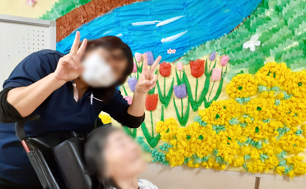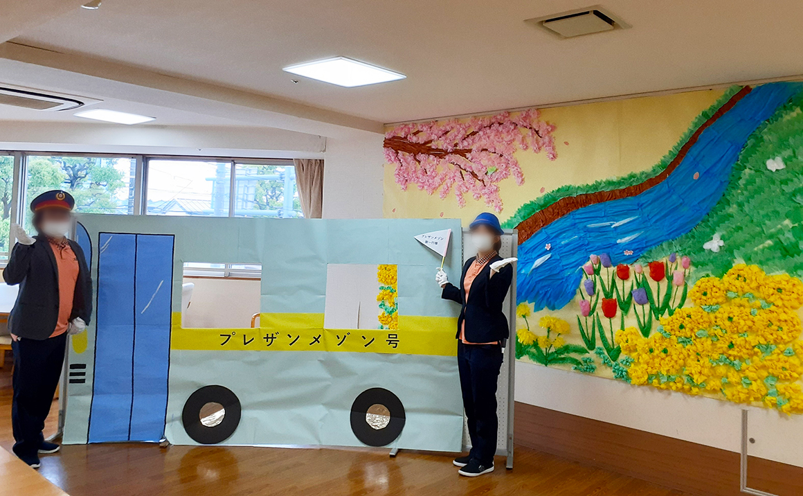 お弁当レクも開催し、バスと一緒にまるで旅行気分♪ お客様も「すてきね~!」と喜ばれていました!