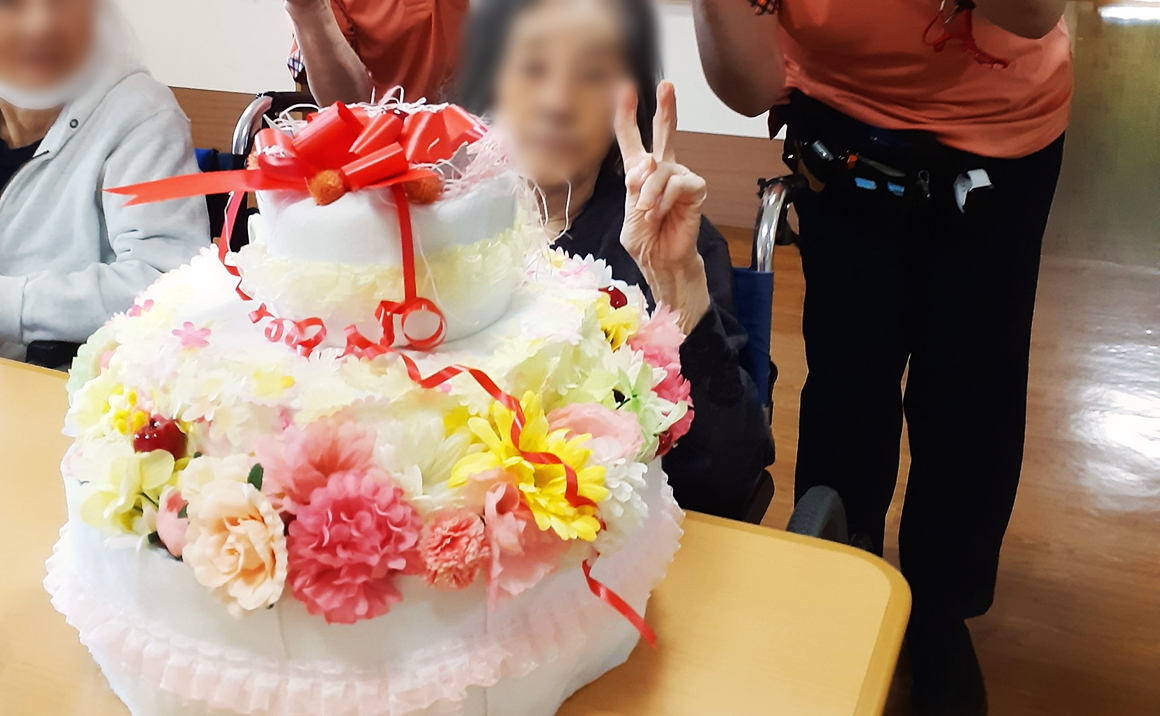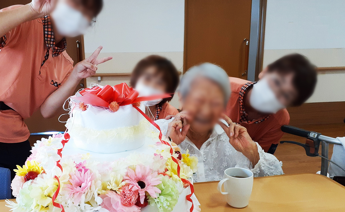 七夕生まれの方は笹の葉と一緒にパシャリ♪ 97歳になる方もいらっしゃり、「あと3年頑張らなくちゃね」と笑顔いっぱいでお話され、 他のお客様とスタッフから盛大な拍手が上がりました!