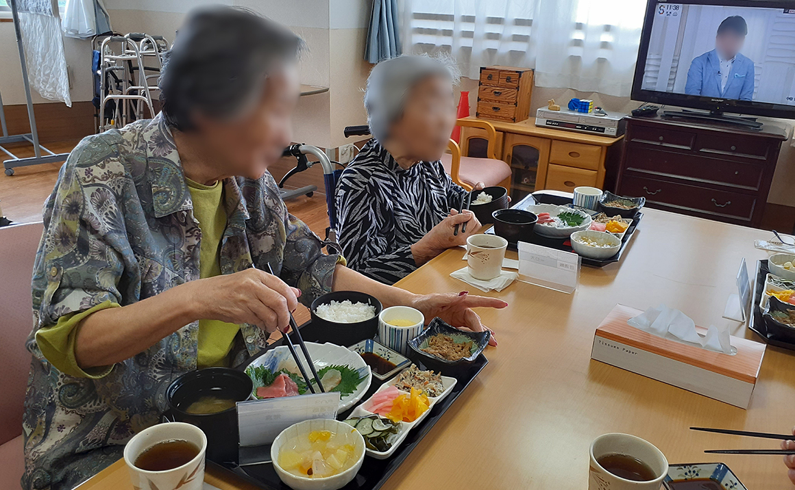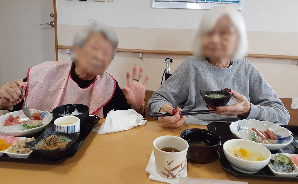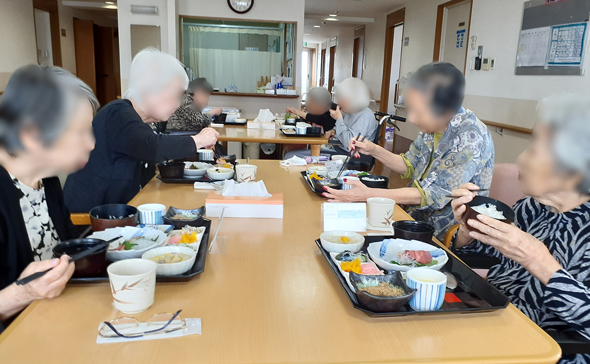 お刺身は人気が高く、今回は7名の方がご参加されました。 本まぐろと真鯛の紅白が華やかで、口でとろける旨みと柔らかさが絶品です! 皆様、和気藹々おしゃべりを楽しまれながら、お刺身を綺麗に召し上がっていました。