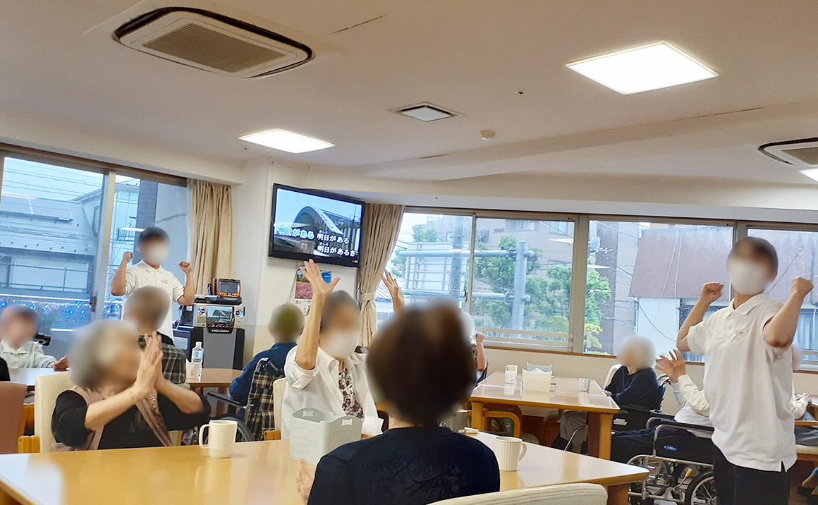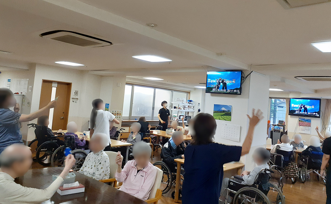 今回来てくれた学生さんたちが考えてくれた企画は、歌と体操を組み合わせたレクリエーションです!