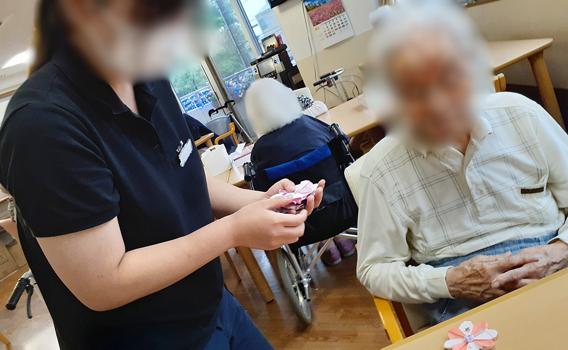 手作りの色とりどりの素敵な花を、お一人ずつ手渡してくれました。