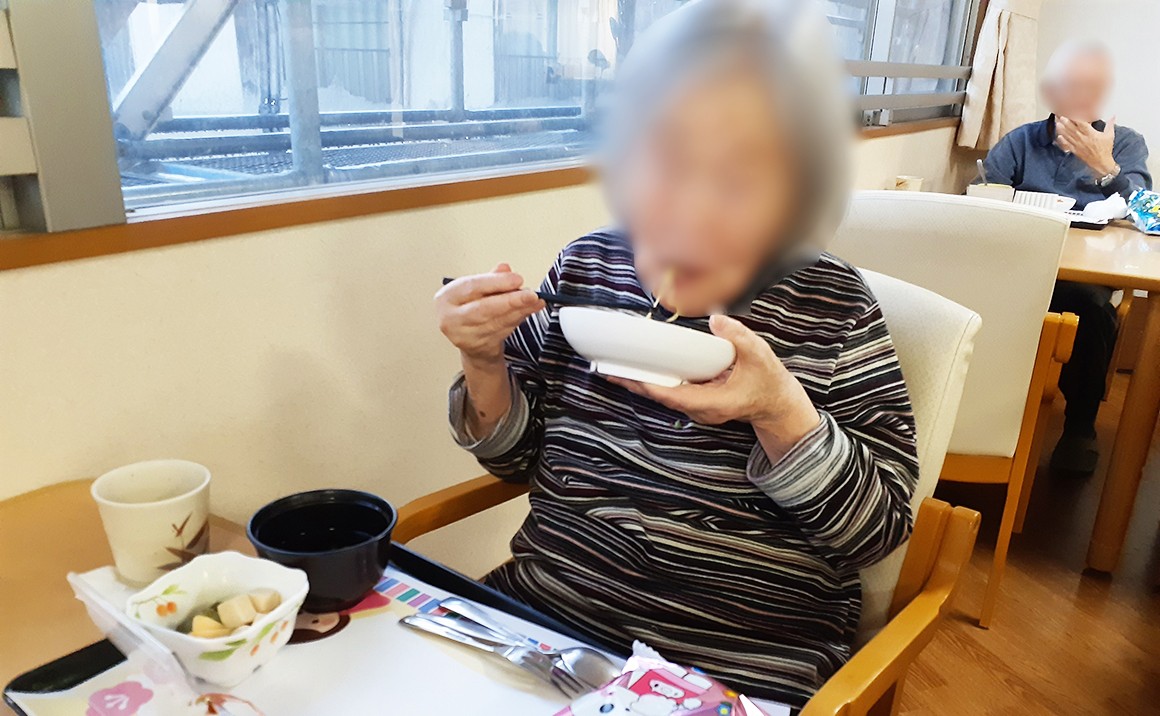 昼食は厨房からのひな祭りメニュー「ちらし寿司・季節の野菜の炊き合わせ・ロールケーキ」