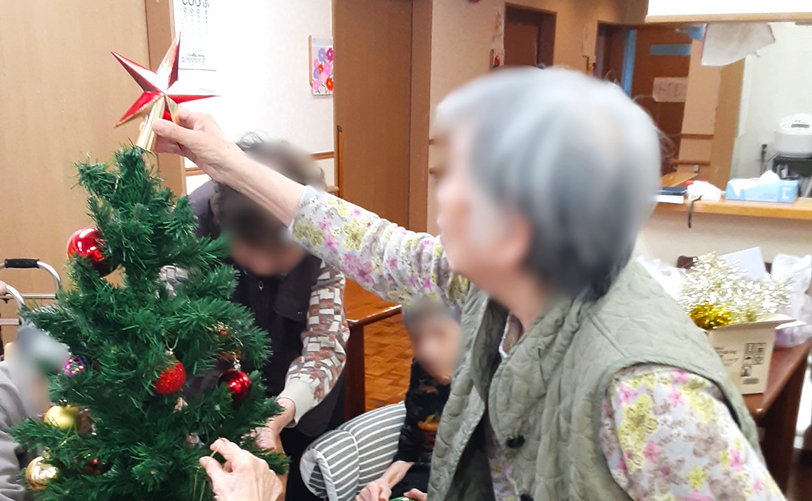 もうすぐ、クリスマス!という事で、たのしい家武蔵府中でも入居者様と一緒にクリスマスツリーの飾りつけを行いました。