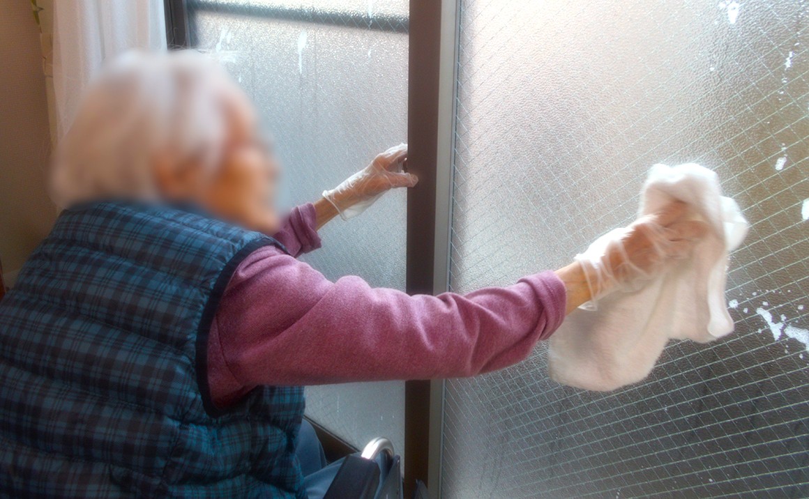 たのしい家武蔵府中では、今年も1年お世話になったホームを入居者様と一緒に大掃除を行いました。 入居者様は窓ふきをされ「綺麗ななったわねぇ~!」と喜んでおられました。