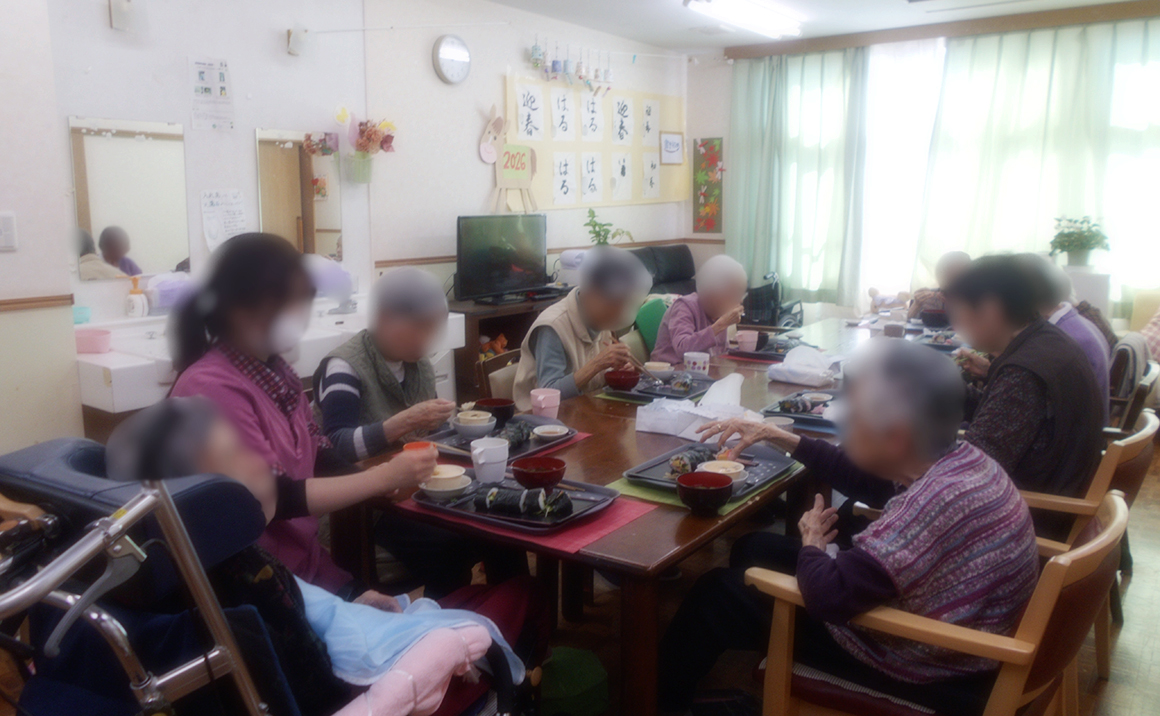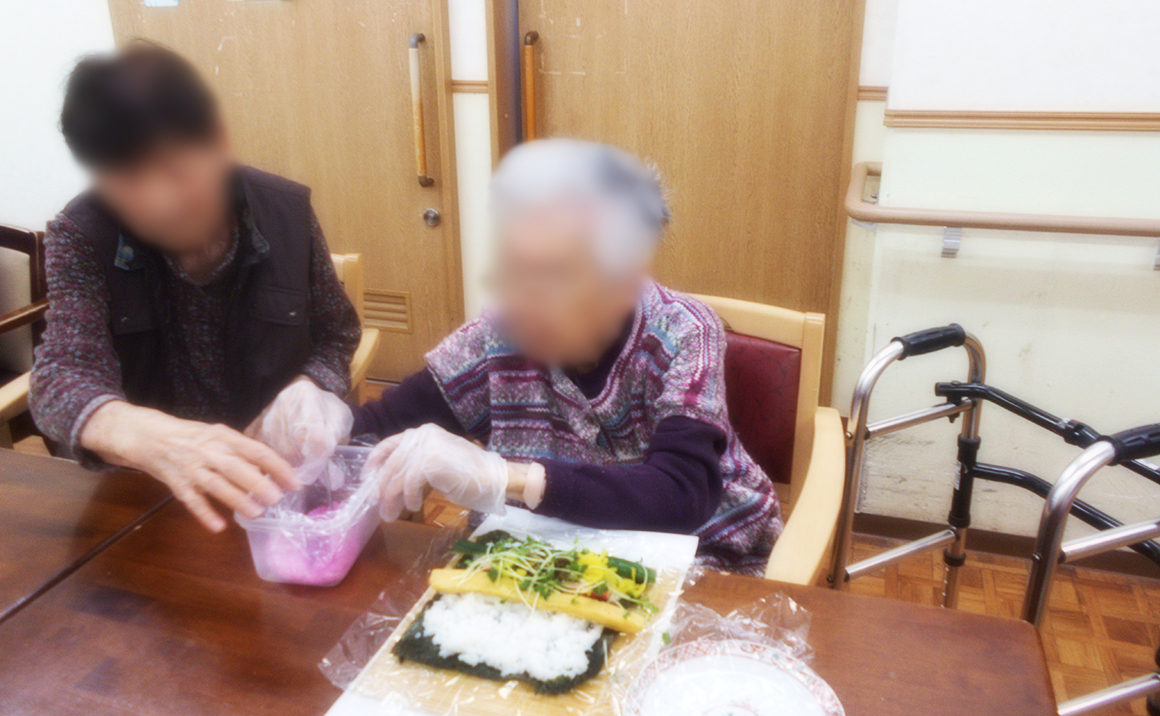 今年もたのしい家武蔵府中では、入居者様と一緒に恵方巻を作りました。