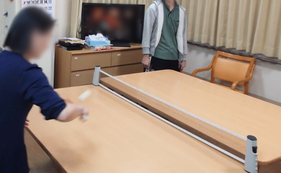 12月のたのしい家上板橋ではクリスマスの準備や月1回の認知症カフェ参加、クラブ活動、外食へお出かけ等 師走にふさわしくあわただしく毎日を過ごされています。 現在クラブ活動では卓球が人気となっており、1Fと2Fのご利用者様対決が盛り上がっております。 1Fフロアにて開催されるため2Fのご利用者様が1Fへおりてくるのですが 準備運動後なんと着替えにおめかしを行い、クラブ活動に参加。 あわただしい中でも余裕を持ち行動される皆様に心から感嘆いたしました。