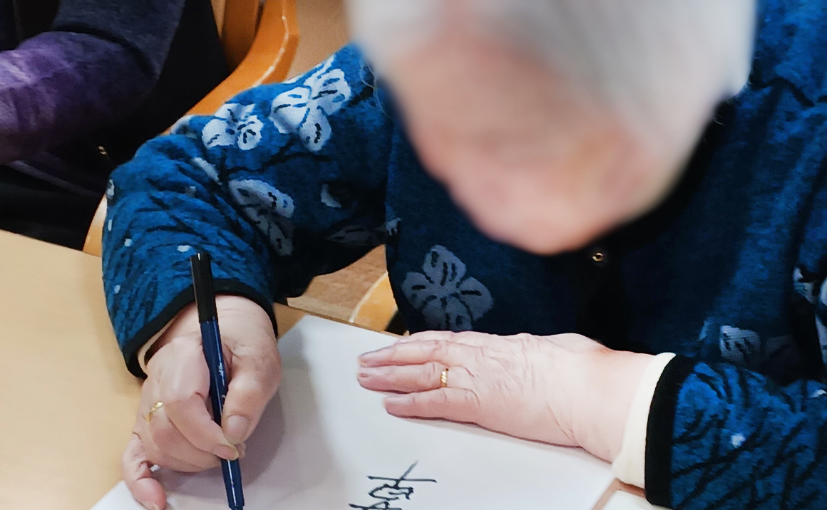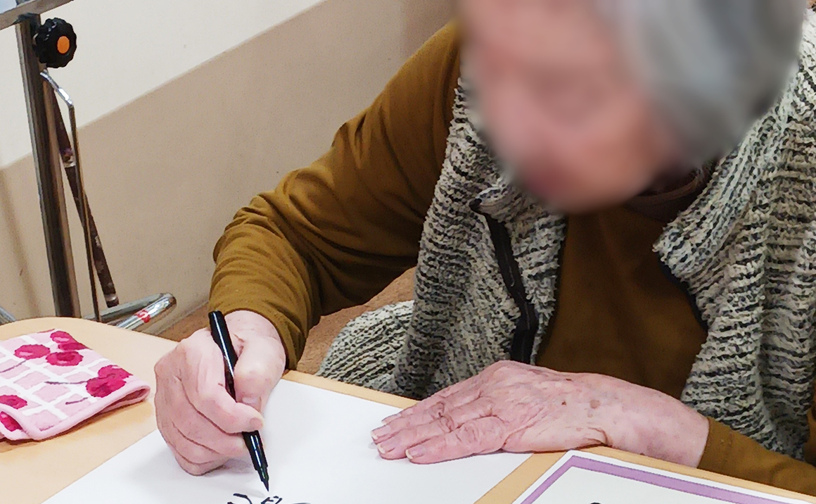 好きな具材をご自身で選び詰めていた為、皆様残さず召し上がられました。 昼食後は書初め、筆じゃうまく書けないと言われ急ぎ習字用筆ペンを用意し書初めを行いました。 本年も皆様が楽しく毎日をお過ごしいただけるよう努めて参ります。