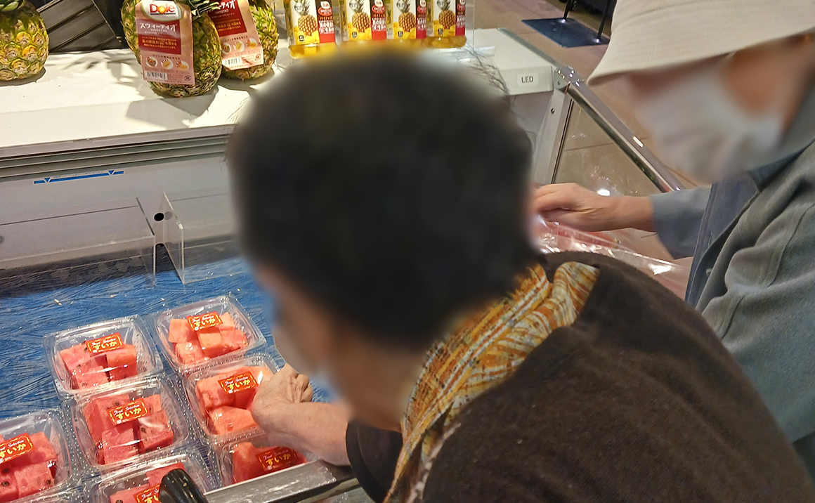 最初にパンの付け合わせを作る為、ご利用者様方と買い出しに行きます。