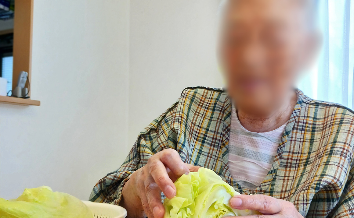 ご利用者様に手伝って頂きながらスープとサラダ完成!!