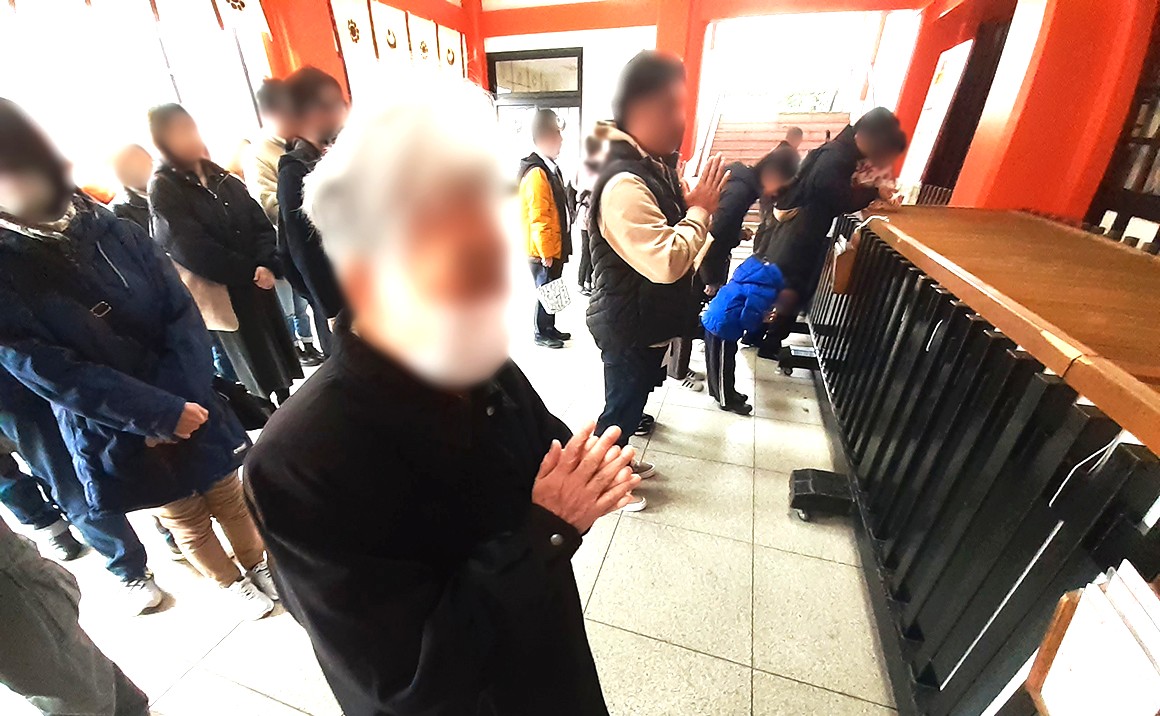 参拝客が多くスタッフと手を繋ぎながら列に並び、お参り迄、待機(*^-^*)