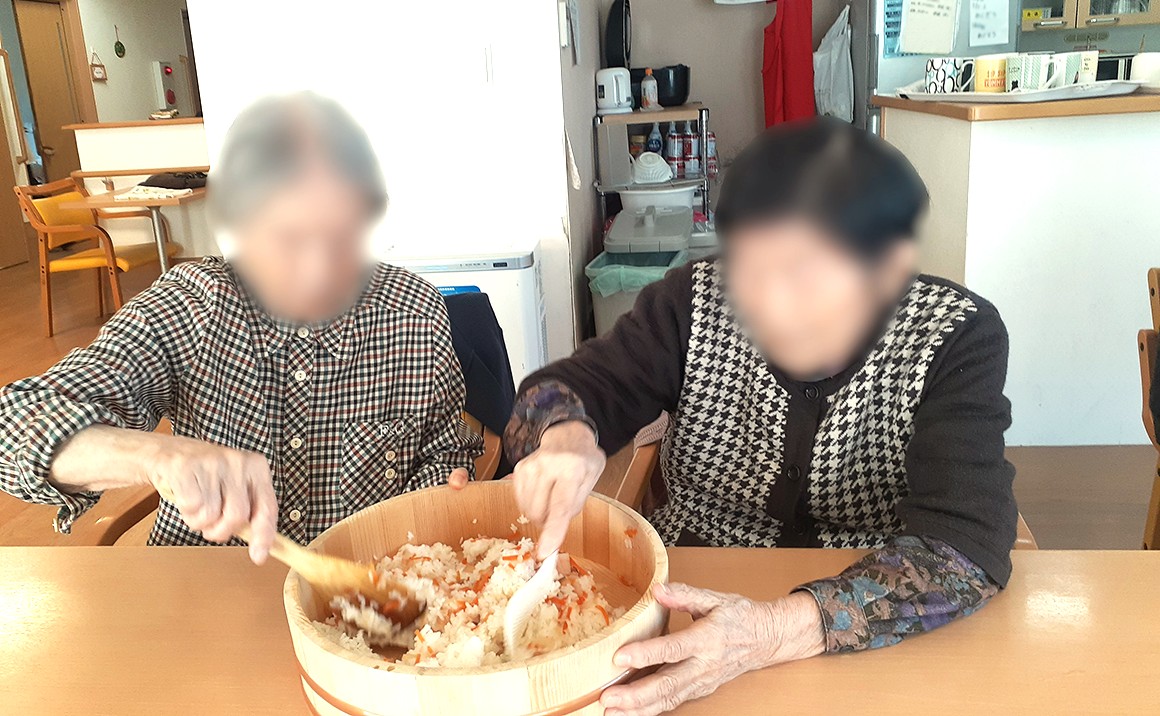 五目のシャリをご利用者様方で綺麗に混ぜて、上には卵や鰻と色合い豊かに盛り付けました!!!