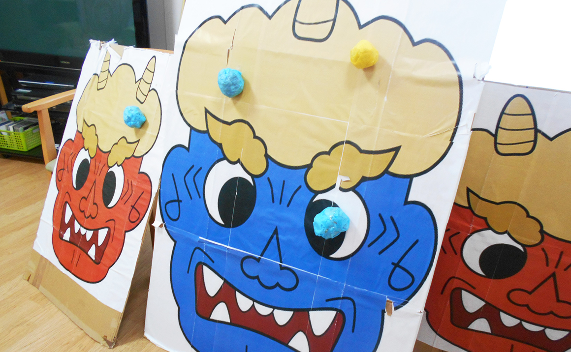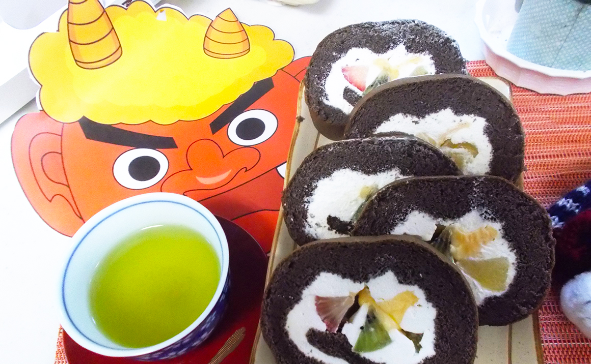 本日は三枚町の節分です。 利用者様と一緒に、的になる鬼面、1階と2階別々に作り上げ、投げる球の作成にも時間がかかりました。 それだけに今日は思いっきり、 そして元気よく「鬼は外、福は内」 そして、 いつものおやつには「恵方巻ロール」、おいしいと皆様仰り召し上がっておられました。