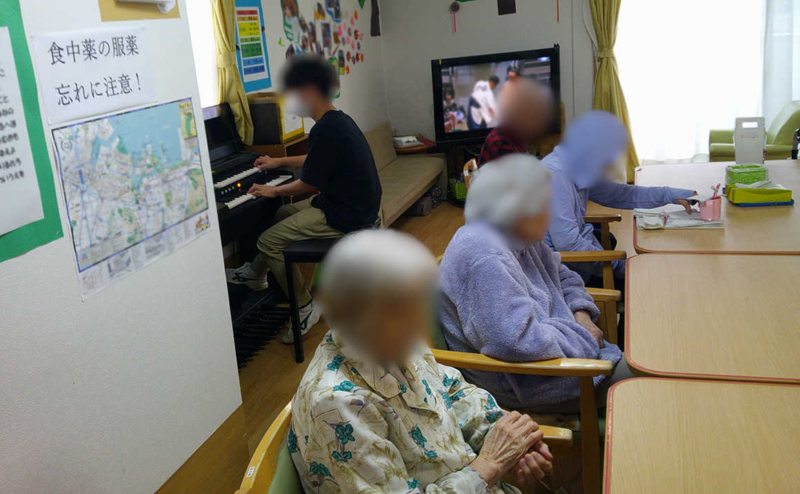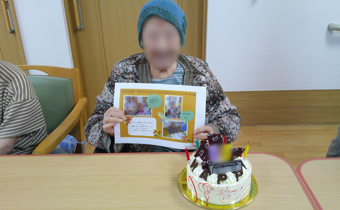 本日は敬老の日でご利用者様のご家族様も数名面会に来られて にぎやかに行事が行われました。 そして、本日誕生日だったご利用者様がいらっしゃいましたので誕生日のお祝いに 手製のカードとケーキで皆様と一緒にお祝いをされました。 また、本日は音楽大の介護体験の学生さんがいらしたので エレクトーンでの”ハッピーバースデイ”をリクエストし、快く引き受けてくださり、そのあともご利用者様からの リクエストにも対していただき、皆様、楽しいひと時を過ごされたようです。